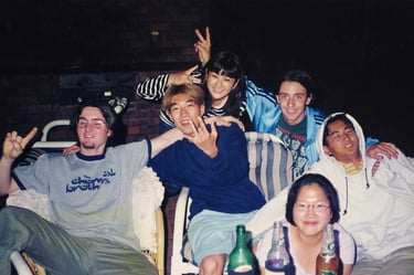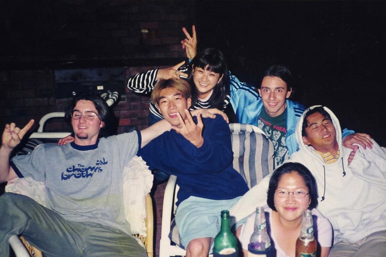 Fast forward to now, and the band is a global operation. A long-distance collaboration between members across four continents. Martin (Brisbane) and Roman (Lucerne) handle most of the writing, producing, and singing, while Brett (Perth), Jess (London), Bea (Los Angeles), and Chase (Hong Kong) offer vocal magic and creative support. This international band of slackers' unconventional process - swapping stems, lyrics, and ideas across time zones - is exactly what gives their music its charm: laid-back, dreamy indie pop that’s excitingly unexcited.